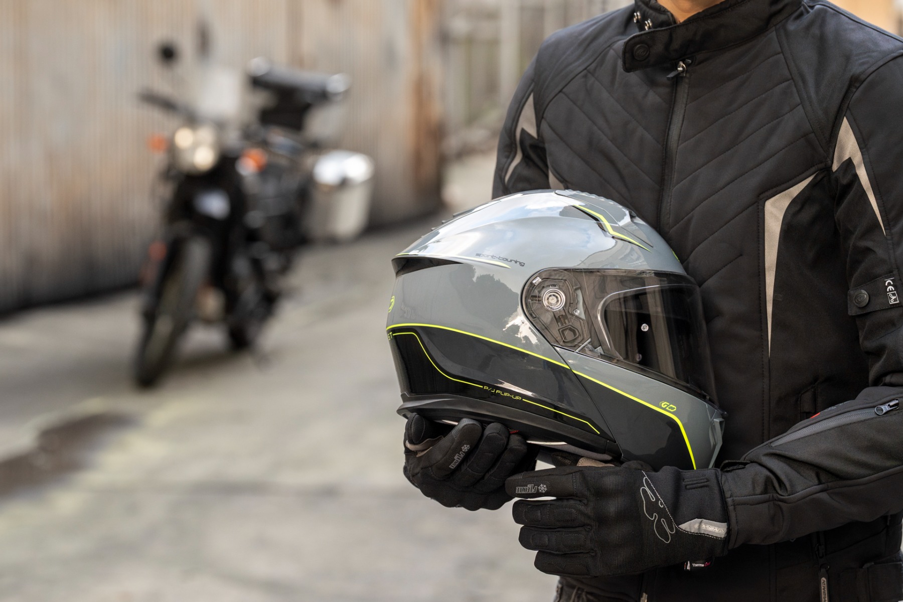 El G100 ST es la nueva grafica del casco modular en diferentes variaciones cromáticas del gris, mantiene todas las características del G100 y juega con la forma recogida de la calota característica de Gari® dándoles un toque distintivo «sport/Touring. El G100 es el casco modular con doble homologación P/J de Garibaldi, para circular con total seguridad tanto con el casco cerrado en modo integral como con el casco abierto en modo jet. Sistema de apertura que permite la apertura con una sola mano y evita la apertura accidental de la mentonera. Ideal para uso touring y urbano, dispone de visor solar integrado, acolchados interiores de gran confort e incorpora lente anti-vaho Pinlock®. Características principales: 2 calotas exteriores fabricadas en ABS para un óptimo ajuste a tallas pequeñas y grandes. Calota interna en EPS de multi densidad para una óptima absorción de los impactos. Eficaz sistema de ventilación formado por 2 entradas de aire regulables en la zona superior y una en la mentonera y por salidas de aire en la zona posterior del casco para extraer el aire caliente del interior del casco. Pantalla de policarbonato con tratamiento antirayas y protección UV. Pantalla antivaho Pinlock® incluida de serie. Mecanismo desmontable de extracción y substitución rápida de la pantalla sin necesidad de herramientas. Corona de goma que aísla correctamente el espacio de visión del casco del exterior. Práctico Sun Visor con tratamiento antirayas fácilmente accionable desde la base del casco. El visor solar interior ofrece un amplio campo visual y una gran visión periférica para reducir la fatiga ocular y dispone de tratamiento anti-rayas y anti-vaho. Interior de gran confort con tejido totalmente desmontable y lavable. Sistema «Easy Fit» que permite pasar la varillas de las gafas cómoda y rápidamente gracias a una ranura que separa el acolchado superior de las almohadillas laterales. Cierre rápido micrométrico. Correa reforzada con pasante de barbilla anti-irritación para una mayor comodidad de uso. Inserciones reflectantes en el Roll-Neck para una mayor seguridad. Incorpora la predisposición para integrar un sistema de comunicación Bluetooth. Deflector de nariz que desvía el aire de la respiración y de barbilla que protege del viento. Casco homologado de acuerdo con las regulaciones europeas ECE 22.06. Colores: gris nardo brillo con flúor, gris claro con rojo, gris titanium mate con flúor. Tallas: XS-XXL.