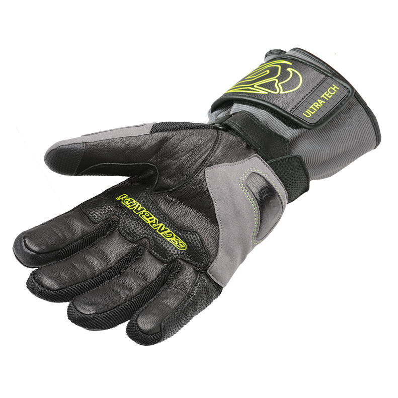 Guantes top de gama invernales que aseguran una total impermeabilidad gracias al uso de la tecnología Outdry®. Se trata de un proceso de laminación patentado que une la membrana impermeable directamente a la capa externa del guante de tal manera que tu mano permanece siempre seca, caliente y cómoda. El ajuste perfecto se complementa gracias a la presencia del forro térmico Primaloft®, de 4oz en dorso y Needled 4oz en palma (113g), caracterizado por proporcionar calor sin peso. Dorso de Spandex, Cordura 330D y exclusiva piel de cabra Goat DD y palma principalmente de piel para una mayor suavidad. Forro interno Bmb t antiarrugas y sin costuras para un máximo confort y tacto excepcional. Protecciones de material termoplástico engomado en nudillos y dedos. Acolchados EVA en muñeca. Refuerzos de Digital Leather en el dedo meñique y la palma y de Chamude en el dedo pulgar y la palma. Protector TPR en la palma. Innovativo tejido capacitivo en las puntas de los dedos para el uso de dispositivos de pantalla táctil sin tener que quitarse los guantes. Visor Wiper en la mano izquierda, elemento de TPR suave y exible para limpiar fácilmente la suciedad de la pantalla del casco. Doble ajuste en muñeca con correa que impide el descalzado y cierre con velcro para mayor seguridad. Inserciones reflectantes y de alta visibilidad en dedos y elastizadas en dedos y dorso. Homologación CE 13594:2015. Colores: Negro y Negro/Gris . Tallas: de XS a XXXL.