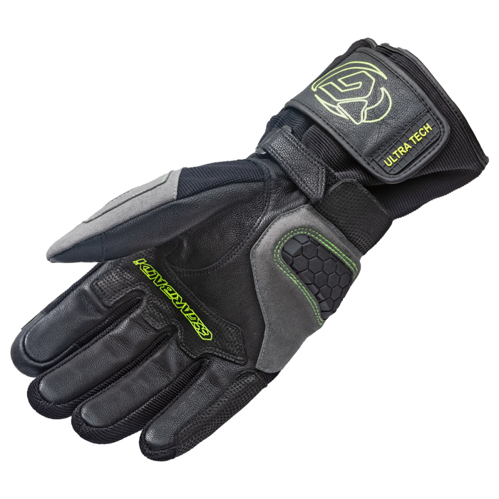 Guantes top de gama invernales que aseguran una total impermeabilidad gracias al uso de la tecnología HDry®. Se trata de un proceso de laminación patentado que une la membrana impermeable directamente a la capa externa del guante de tal manera que tu mano permanece siempre seca, caliente y cómoda. El ajuste perfecto se complementa gracias a la presencia del forro térmico Primaloft®, de 4oz en dorso y Needled 4oz en palma (113g), caracterizado por proporcionar calor sin peso. Dorso de Spandex, Cordura 330D y exclusiva piel de cabra Goat DD y palma principalmente de piel para una mayor suavidad. Forro interno Bmb fit antiarrugas y sin costuras para un máximo confort y tacto excepcional. Innovativo protector TPR en la palma. Protecciones de material termoplástico engomado en nudillos y dedos. Acolchados EVA en muñeca. Refuerzos de Digital Leather en el dedo meñique y la palma y de Chamude en el dedo pulgar y la palma. Tejido capacitivo en las puntas de los dedos para el uso de dispositivos de pantalla táctil sin tener que quitarse los guantes. Visor Wiper en la mano izquierda, elemento de TPR suave y exible para limpiar fácilmente la suciedad de la pantalla del casco. Doble ajuste en muñeca con correa que impide el descalzado y cierre con velcro para mayor seguridad. Inserciones reflectantes y de alta visibilidad en dedos y elastizadas en dedos y dorso. Homologación CE 13594:2015. Color: Negro. Tallas: XS a XXXL.